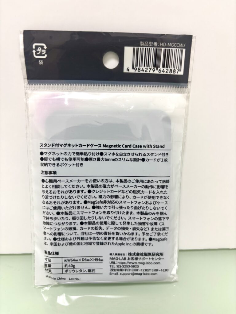 ・仕様:MagSafe対応/縦横両対応スタンド機能付き/カード1枚収納可能