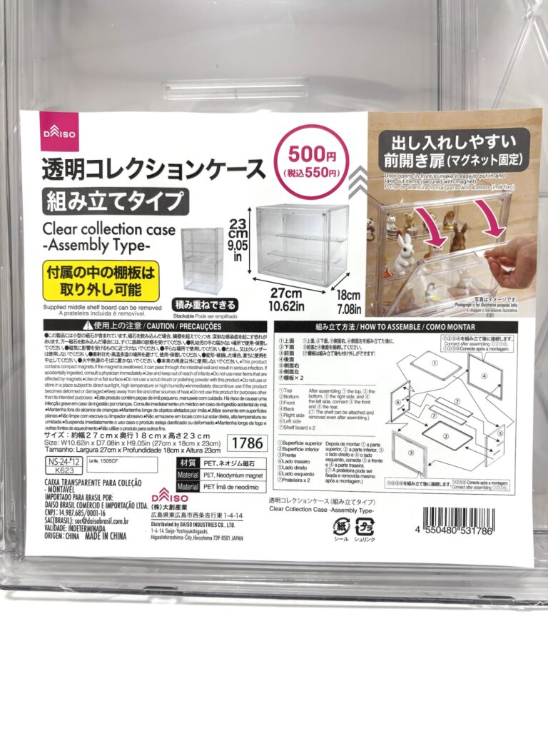 ダイソーの透明コレクションケースは、550円という価格を考えると、サイズ感・透明度ともに十分満足できるクオリティでした。