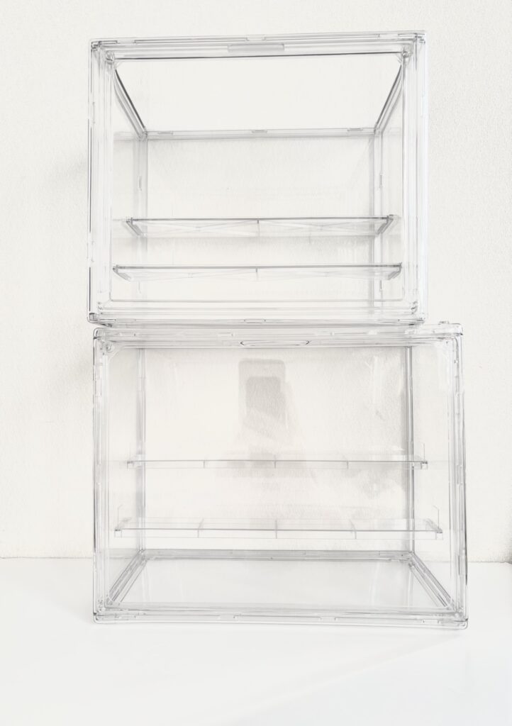 以前購入したTemuの透明コレクションケース(購入時価格1,087円)と、今回購入したダイソー版(550円)を並べて比べてみました。